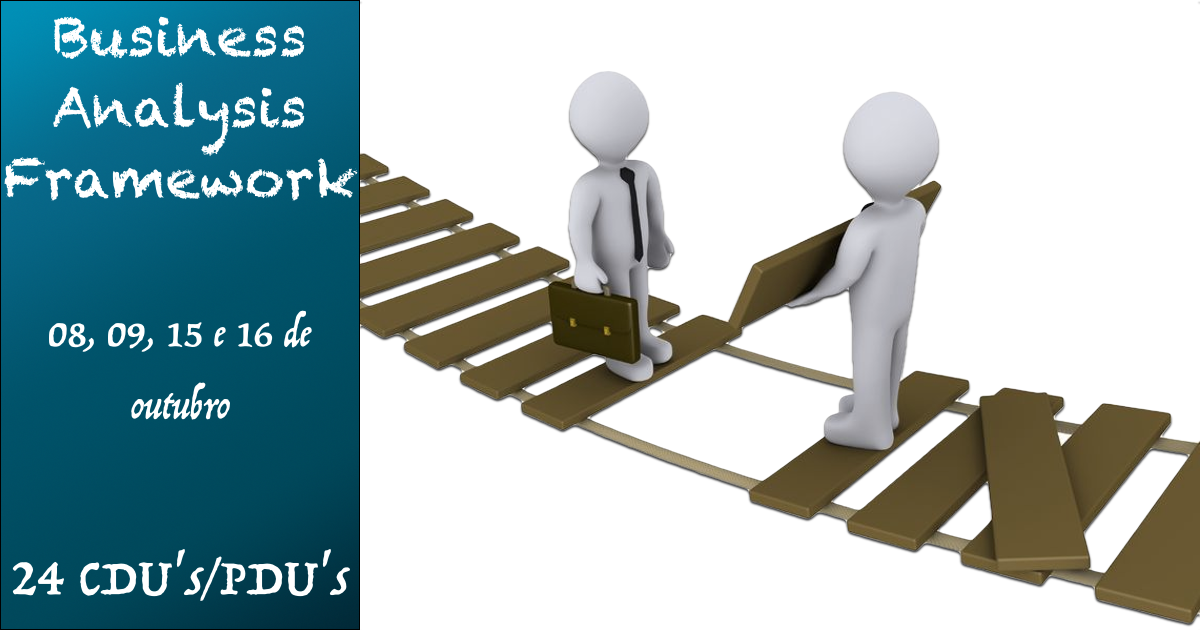 Tem início já na próxima semana o curso BAF-Business Analysis Framework da PPM Coachers, onde são apresenta os principais processos, técnicas e ferramentas que permitam abordar com confiança as actividades de gestão do âmbito e de requisitos de qualquer projeto, independentemente da área, dimensão ou complexidade envolvida, e mantendo sempre a ligação com a estratégia empresarial e a perspectiva do negócio.